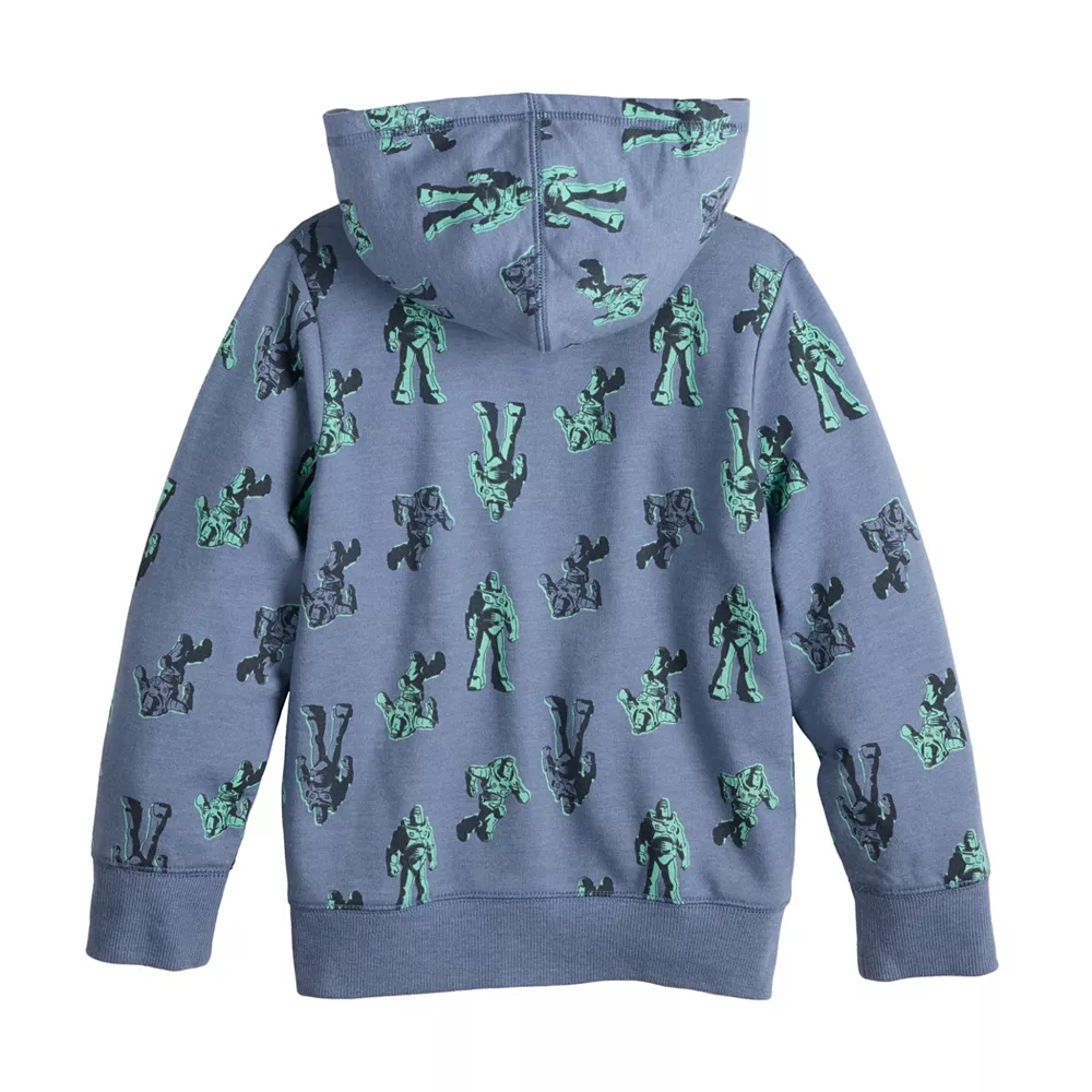 He’ll be ready to go to infinity and beyond in this boys’ allover print Buzz Lightyear French terry hoodie from Jumping Beans. ©Disney / Pixar