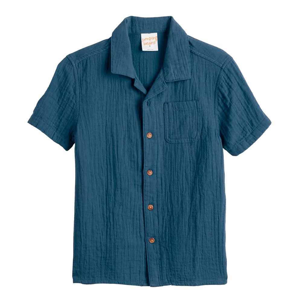 Dress him up in modern style with this boys’ Jumping Beans button-front pocket shirt.