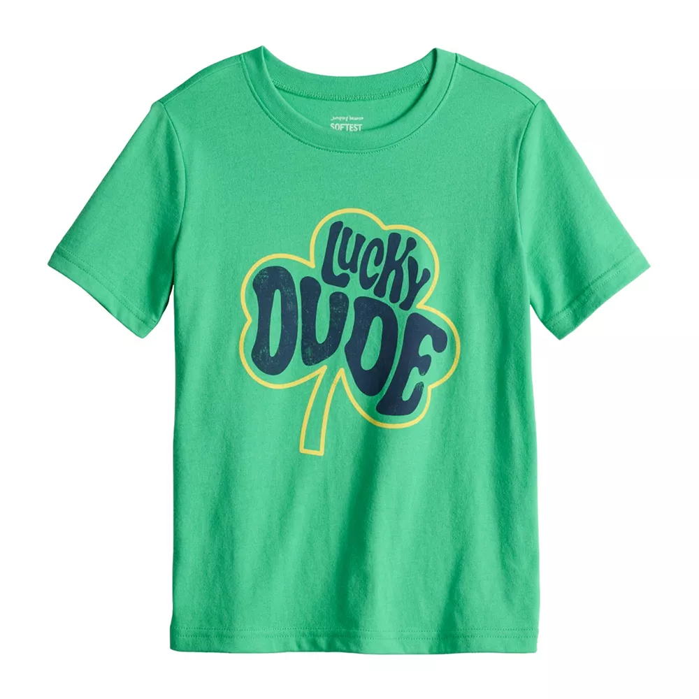 This boys’ Jumping Beans shamrock tee features a “Lucky Dude” caption.
