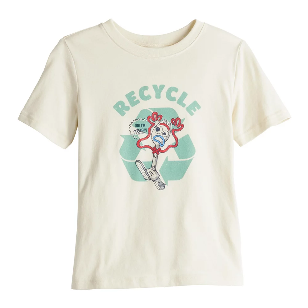 He’ll make a statement in this “Recycle” Forky tee from Disney/Pixar Toy Story 4. By Jumping Beans. © Disney/Pixar