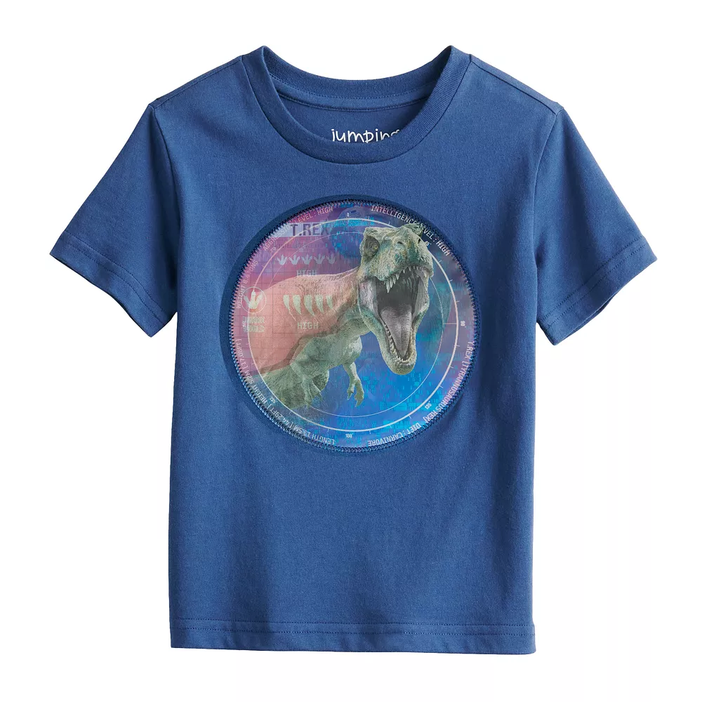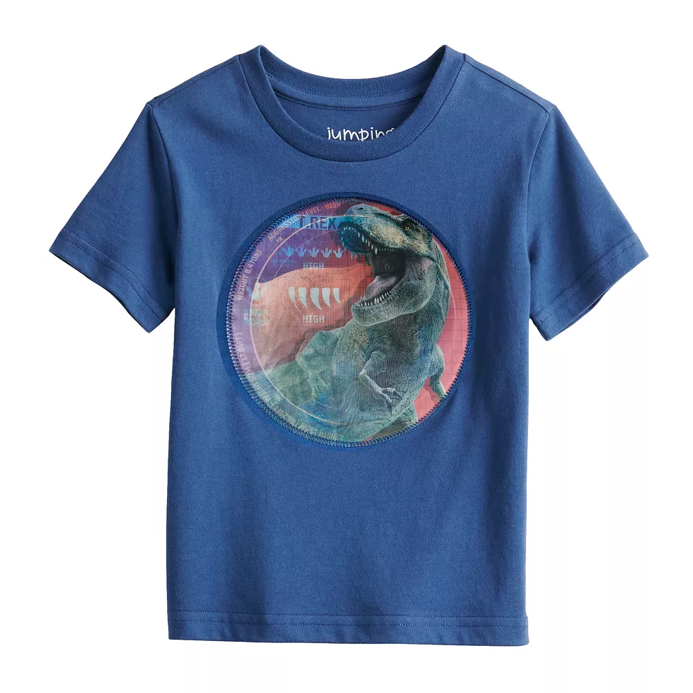 He’ll love his look in this fierce toddler boys’ lenticular T-Rex graphic tee from Jumping Beans.