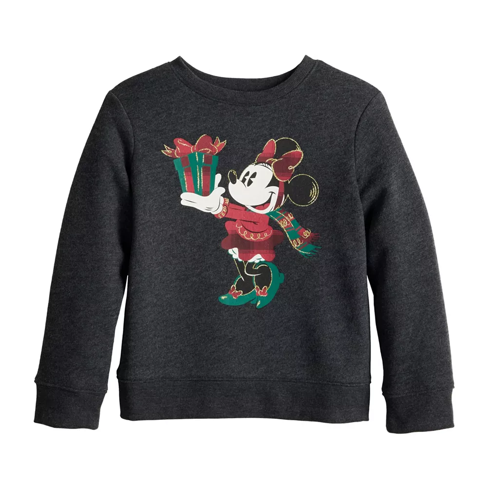 She’ll celebrate the holidays in style wearing this toddler girls’ Minnie Mouse holiday sweatshirt from Jumping Beans. ©Disney