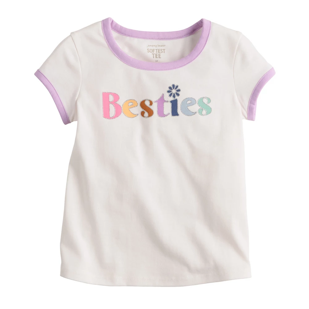 This rainbow lettered “Besties” ringer tee by Jumping Beans has her looking adorable!